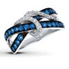 Color and brilliance combine in this stunning ring with Cornflower Ceylon Sapphire rows that cross in the center, accented by sparkling swirls of Vanilla Diamonds. Crafted of 14K Vanilla Gold, the ring has a total diamond weight of 1/5 carat.Discover the Legend. Please note: This ring is available in limited sizes. If you don’t see your size here, please visit a store to order your ring.